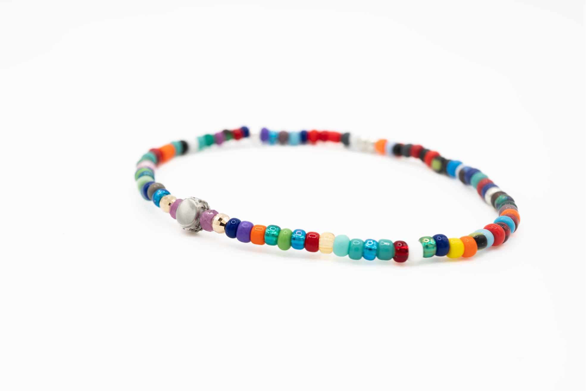 The bracelet show is for demonstration purposes only. Each bracelet is handmade with similar multicoloured glass beads. Your bracelet colours will differ to the one shown. Crown sizes also vary from 4mm-6mm in diameter.